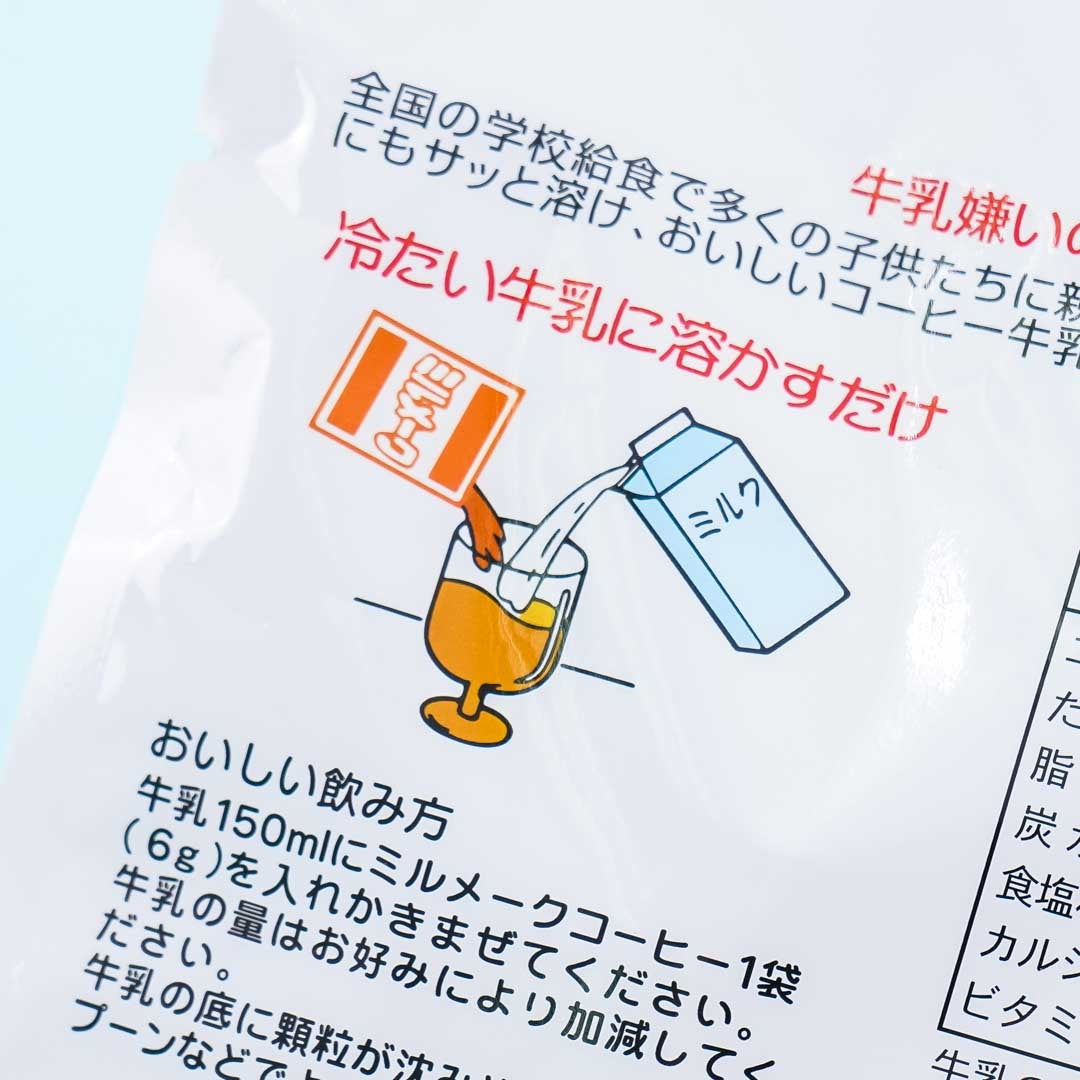 This box of powder is for making creamy coffee in the morning. All you have to do is open a packet and dissolve the powder in some liquid. It goes perfectly with milk!