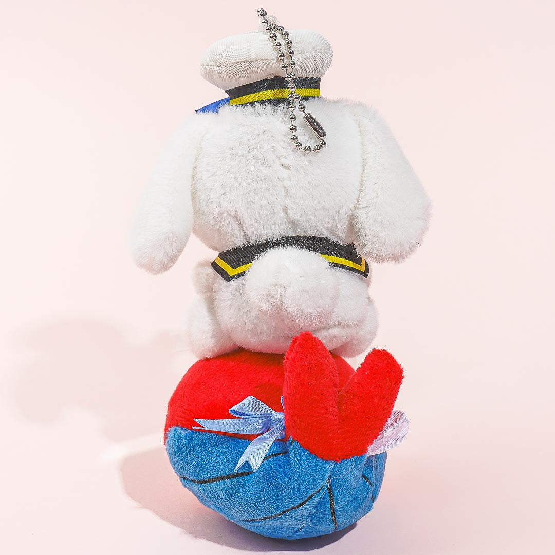This kawaii plushie charm features Cinnamoroll in a sailor outfit while riding the iconic red whale mascot of Ottotto — the famous brand of sea animal-shaped crackers from Morinaga! Add a dose of cuteness to your school or work bag by attaching this fluffy charm! This special set also comes with a cup of Ottotto crackers as well.