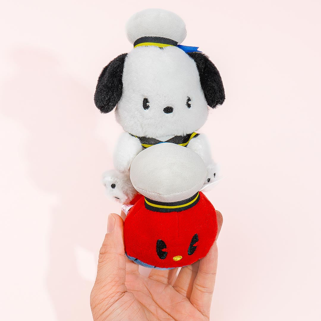 Have fun playing with this super cute plushie charm featuring sailor Pochacco riding on the red whale mascot of the famous brand of Japanese crackers, Ottotto! The set also comes with a cup of Ottotto cracker snacks that are shaped like sea creatures.