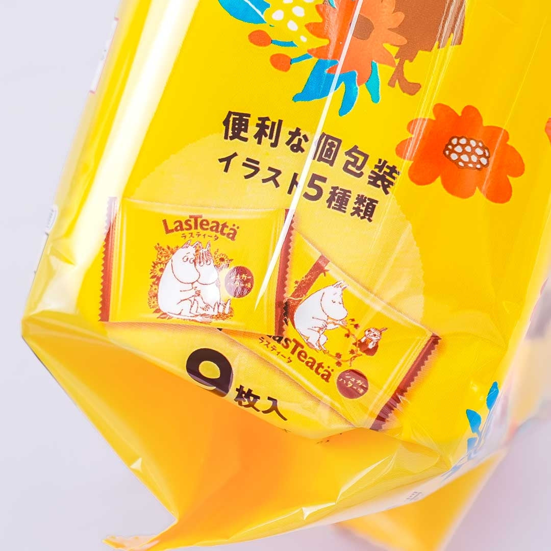 Enjoy a relaxing afternoon tea paired with this pack of crunchy biscuit snacks! Each high-quality "rusk" or twice-baked bread biscuit has a delicate sweet butter taste and is wrap in cute individual packaging featuring the Moomins!