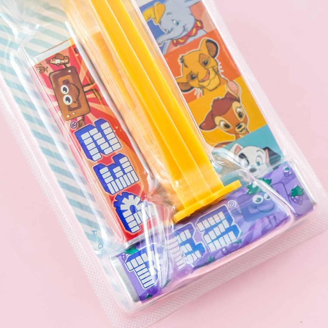 • A pack of grape and cola-flavored candy with a PEZ dispenser featuring Simba from the Lion King