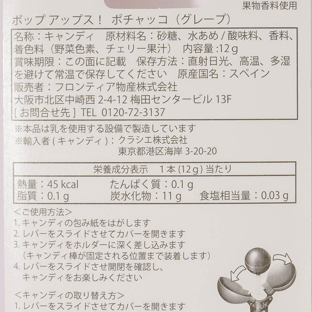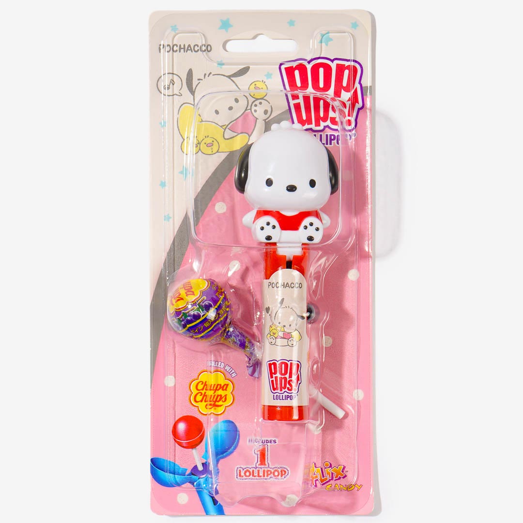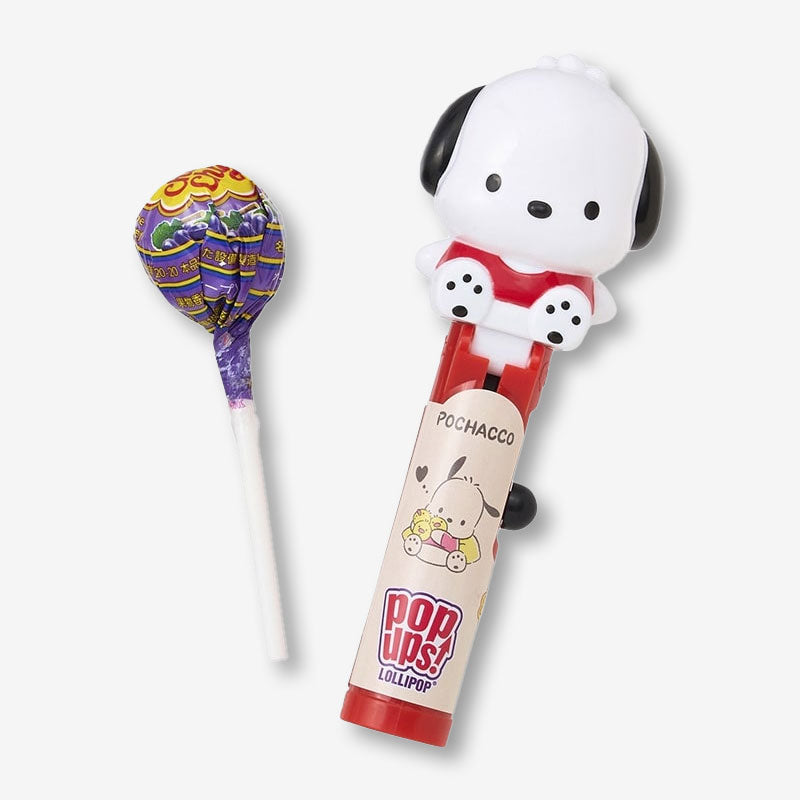 Have fun eating your lollipop in this super cute holder featuring Pochacco! Simply slide the lever to open the top part and place the grape-flavored Chupa Chups lollipop inside. You can also use this holder for other lollipops!