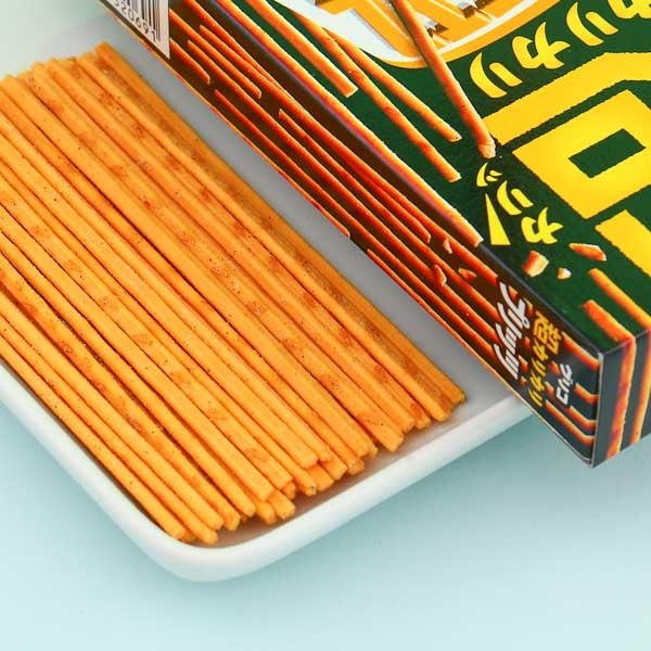 Pretz is a delicious, funny biscuit snack from Japan, made by the famous Glico! Not only are Pretz sticks covered in a diverse assortment of flavor, but they also come in a broad array of styles and shapes. These special Pretz sticks are extremely thin, and covered in cheese powder! The package has 2 smaller packs inside, so they are super easy to take with you where ever you go!