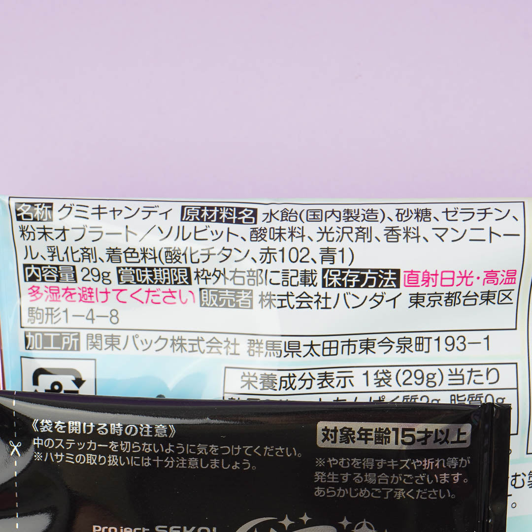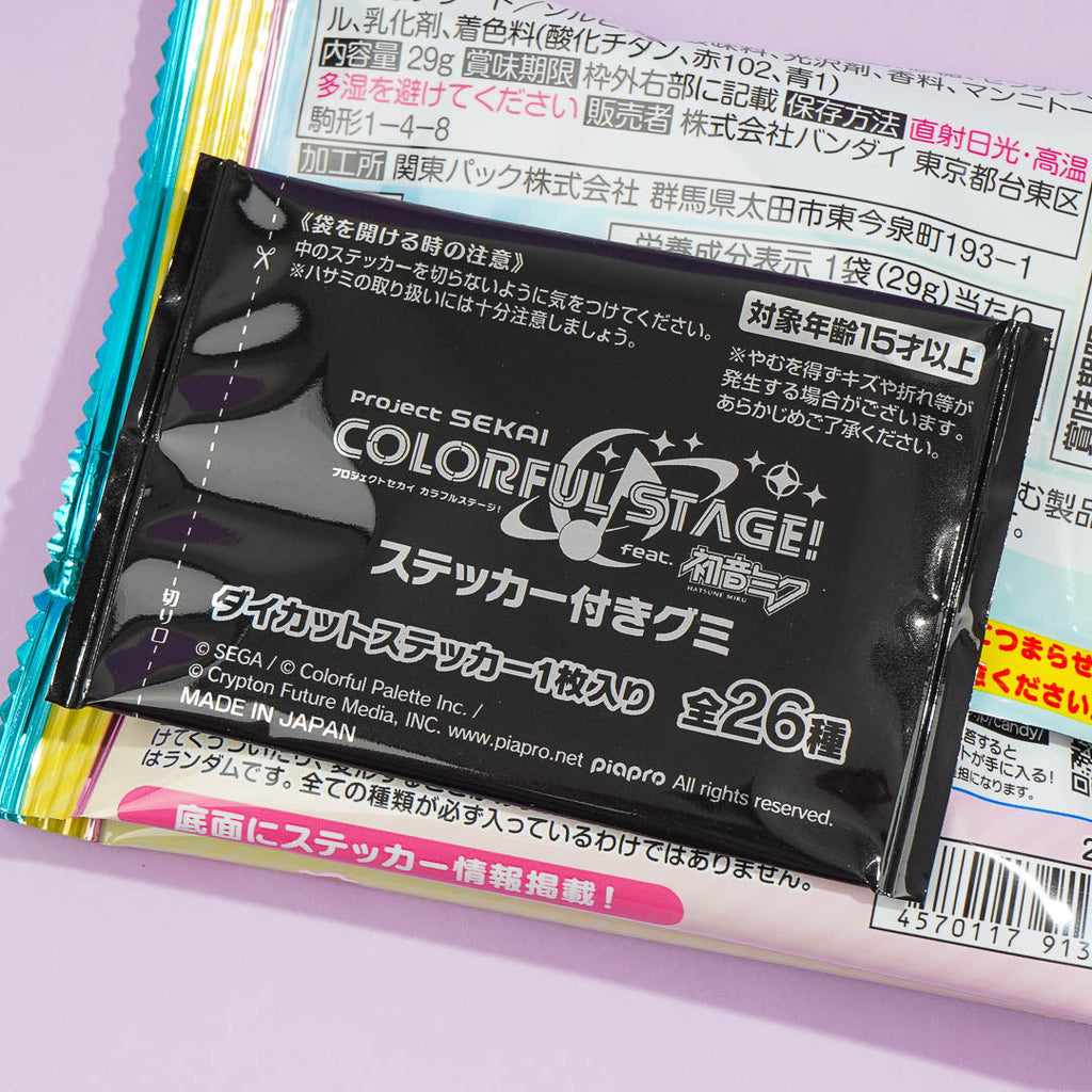 Have fun expanding your anime sticker collection as you munch on these yummy peach and soda-flavored gummies! Each pack also contains a free seal featuring a random character from the mobile game, Project SEKAI Colorful Stage! featuring Hatsune Miku.