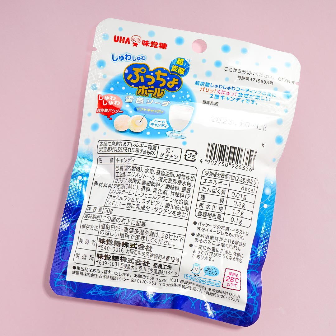 Have a blast trying these snow-white-colored candy balls! The treats taste like refreshing white soda and are coated with a super carbonated powder that fizzes once you put them in your mouth! These candies have a two-layered structure with a crispy coating on the outside and a chewy interior.