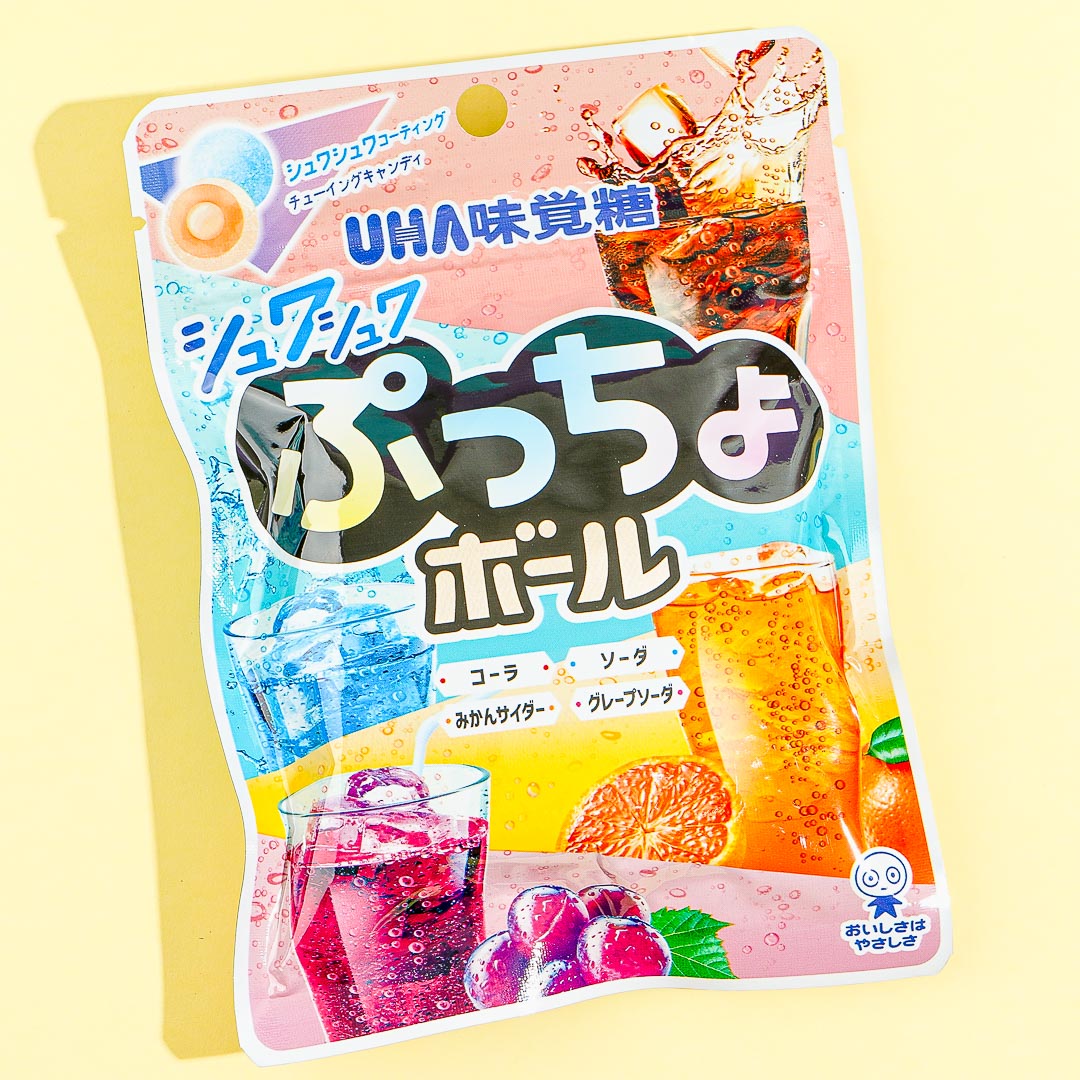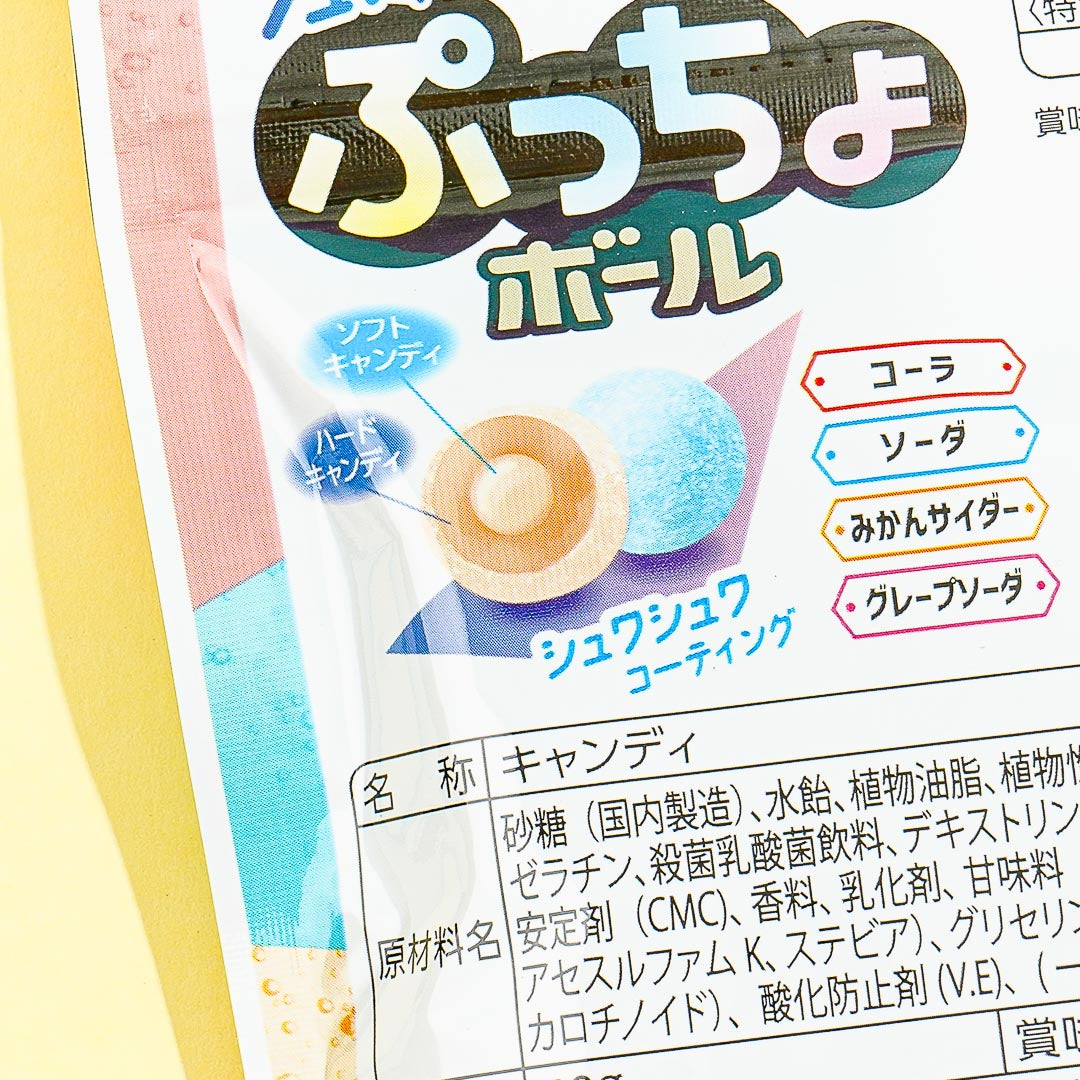 The classic Puccho candies are now in ball shapes! Each piece has a thin crispy outer shell, a hard candy layer, and a soft chewy center inside. Enjoy the four different carbonated drink flavors: cola, soda, grape soda, and orange soda.