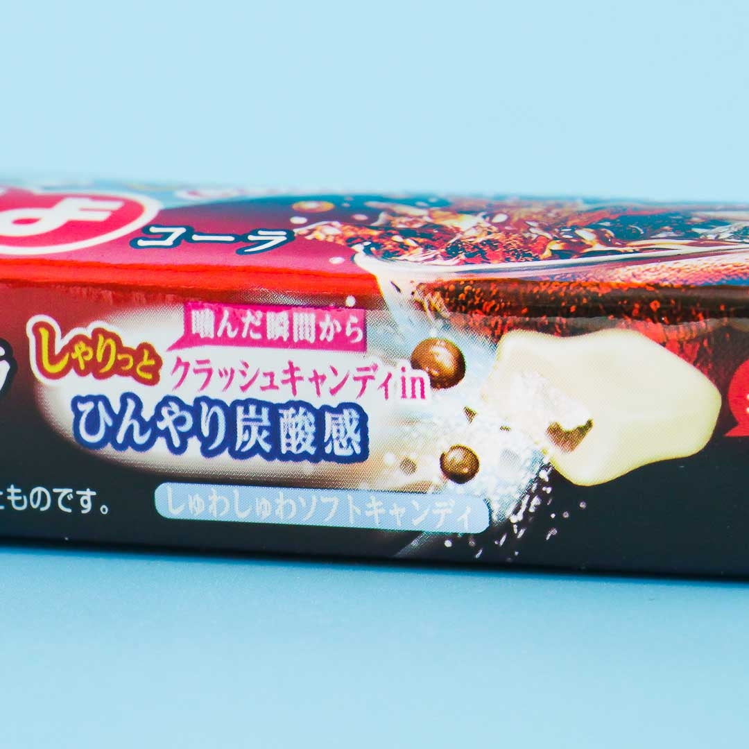 Puccho's cola-flavored chewy candies just got even cooler! Each chewy piece has crunchy crushed soda candy bits inside. They are coated in a cooling powder which gives them that fizzy cola sensation.