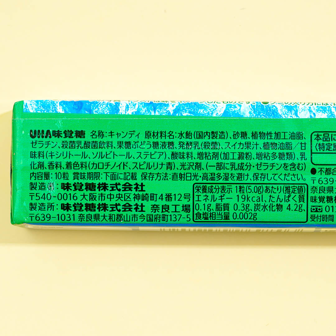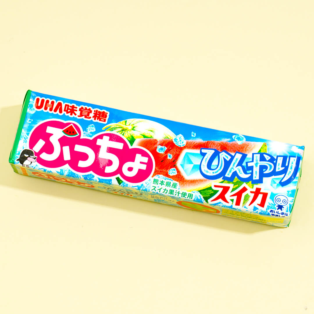 Enjoy this cool and sweet watermelon-flavored chewy candy on a hot summer day! It's made with watermelon juice from Kumamoto Prefecture, a famous producer of sweet watermelons. Each piece has juicy gummy bits inside!