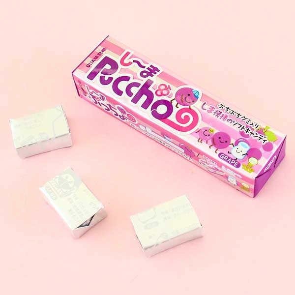 Grape gummy bits and milky chewy candy is a delicious combination of Puccho candies