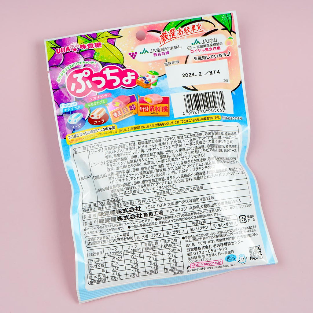 Share this bag of chewy candy with your family and friends! You can now enjoy four flavors in one pack — soda, cola, kyoho grape, and white peach. It's a chewy candy with a fizzy center and crunchy bits.