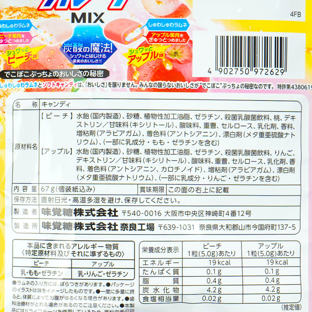 Give in to your sugar cravings and enjoy this pack of chewy candy! It has two different flavors for you to enjoy - sparkling peach and sparkling apple. Each fruity piece has fizzy pellets and bits of dried fruit that add to its unique, chewy texture.