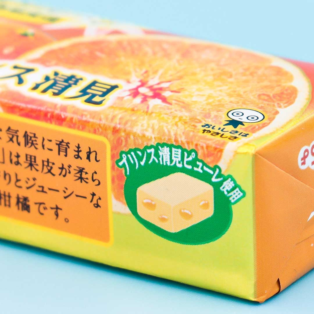 These gummy-infused chewy candies are flavored with the high-end taste of Prince Kiyomi, a type of sweet Japanese orange. This version is made with real Prince Kiyomi orange fruit purees from Hiroshima Prefecture, giving each treat a juicy citrus flavor.