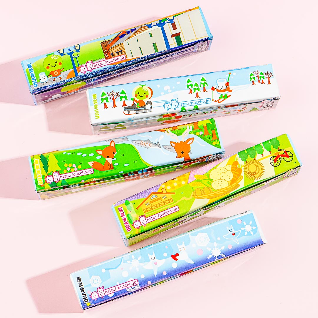 Indulge in these soft candies that have chewy gummy bits! Each individually wrapped piece tastes like a combination of tangy yogurt and premium sweet Yubari melon from Hokkaido Prefecture.