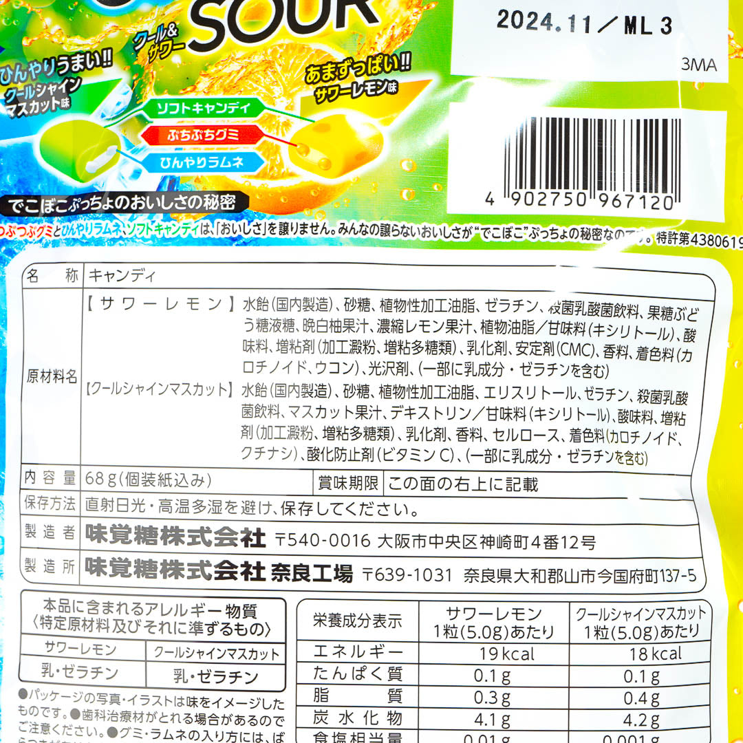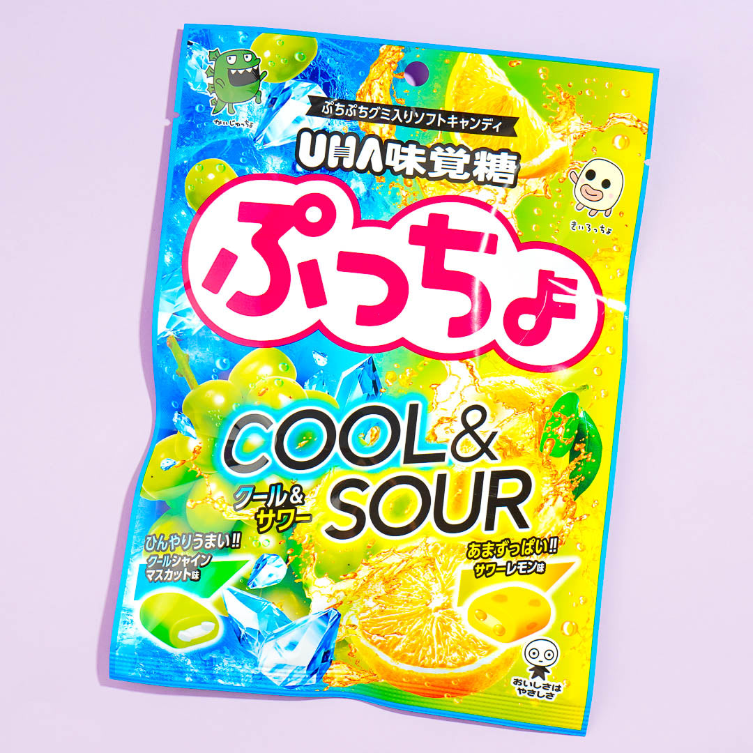 Add this pack chewy candy to your secret stash of sweets! These candies combine sour flavors with a cooling sensation which is perfect for summer. You'll get two different flavors of chewy candy in this pack - cool shine muscat and sour lemon!