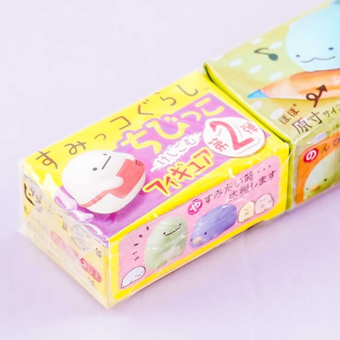 Comes with a 3D-shaped eraser featuring a Sumikko Gurashi character