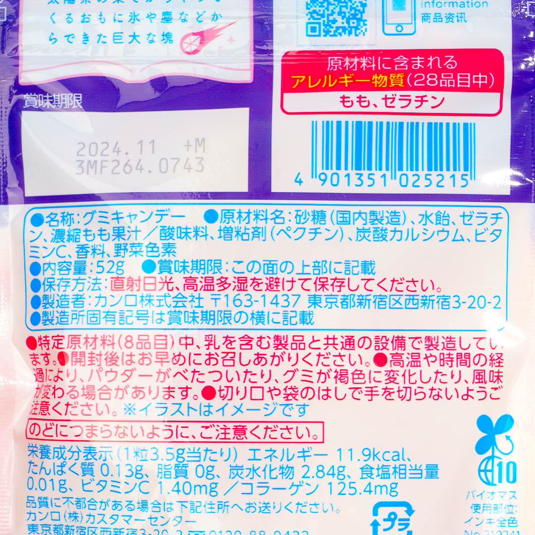 Savor the sweet and sour taste of refreshing peach soda as you try these heart-shaped gummies! Each piece is also generously coated with sour sugar powder. Don’t forget to close its resealable packaging to keep these gummies fresh!