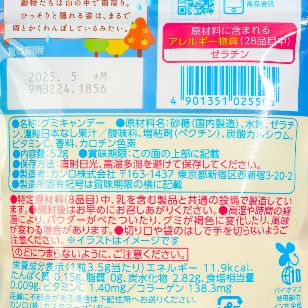 This pack of gummy candies is the perfect sugary pick-me-up after a tiring day! Each one tastes like delicious Japanese pear. Enjoy the sweet and sour fruity flavor with every bite.
