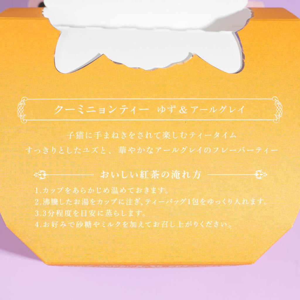 Add this cute pack of tea bags to your tea cabinet! It features a print of cute kitten checking out a cup of tea. Each tea bag makes for delicious yuzu earl gray tea!