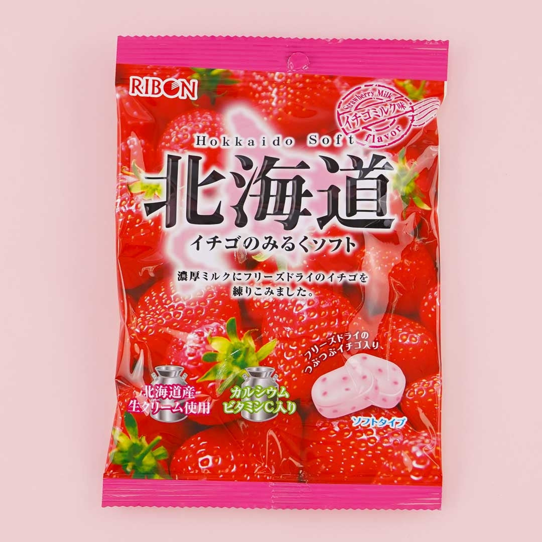 These soft candies taste like the famous Hokkaido soft serve ice cream which uses the prefecture’s fresh cream! Each piece is also packed with sweet and sour freeze-dried strawberry bits! Have fun trying these sweets as they also contain beneficial calcium and vitamin C.