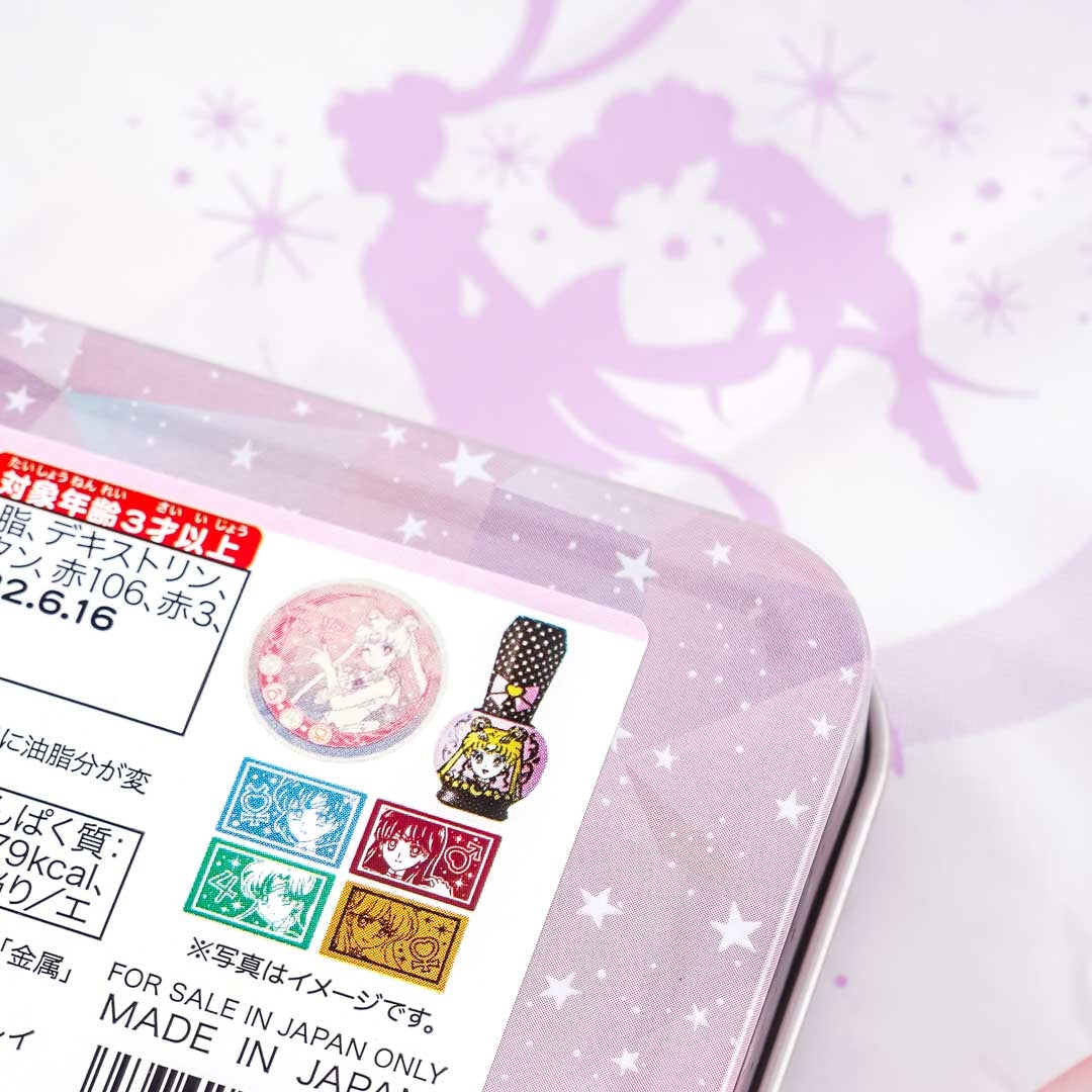 Send love to your special someone by giving them this can of assorted chocolate. It's illustrated with Sailor Moon character silhouettes. This tin can of chocolates comes with a special paper bag!