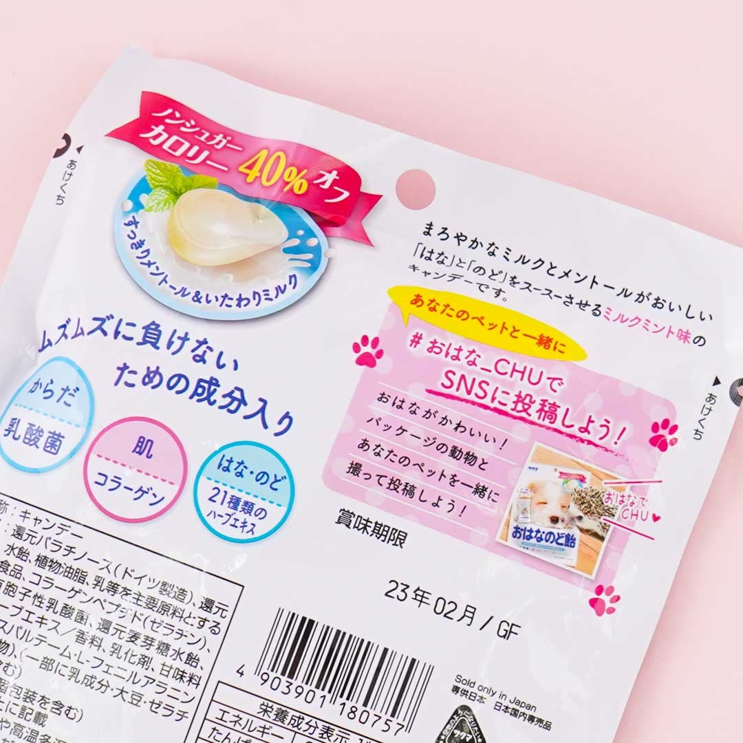 This pack of throat candy features a print of a cute baby animal! Each soothing lozenge mixes the gentle taste of milk and soft menthol. Not only that, but these tasty treats have collagen, lactic acid bacteria, and 21 kinds of herbal extracts. You don't have to worry about weight gain either because these candies have 40% fewer calories with no sugar. Surprise yourself with a random package design when you order.