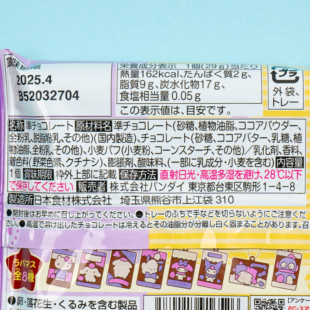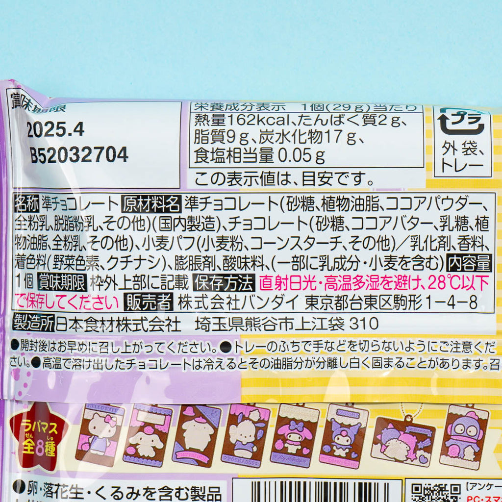 Have fun nibbling on this cute pack of chocolate! It features one of your kawaii besties from Sanrio. This chocolate also comes with a collectible chocolate-bar charm illustrated with a Sanrio character. Surprise yourself with a random character from a set of 8 when you order!