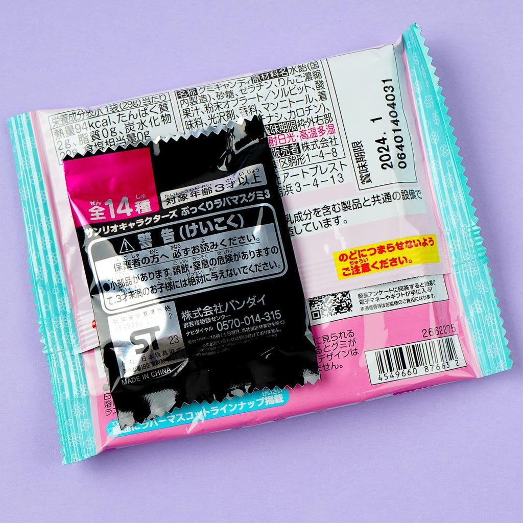 Enjoy these yummy gummies are shaped like the Sanrio cuties! This pack is flavored with tasty apple juice and comes with a kawaii rubber charm. The charm features a cute illustration of a Sanrio character looking out their window.