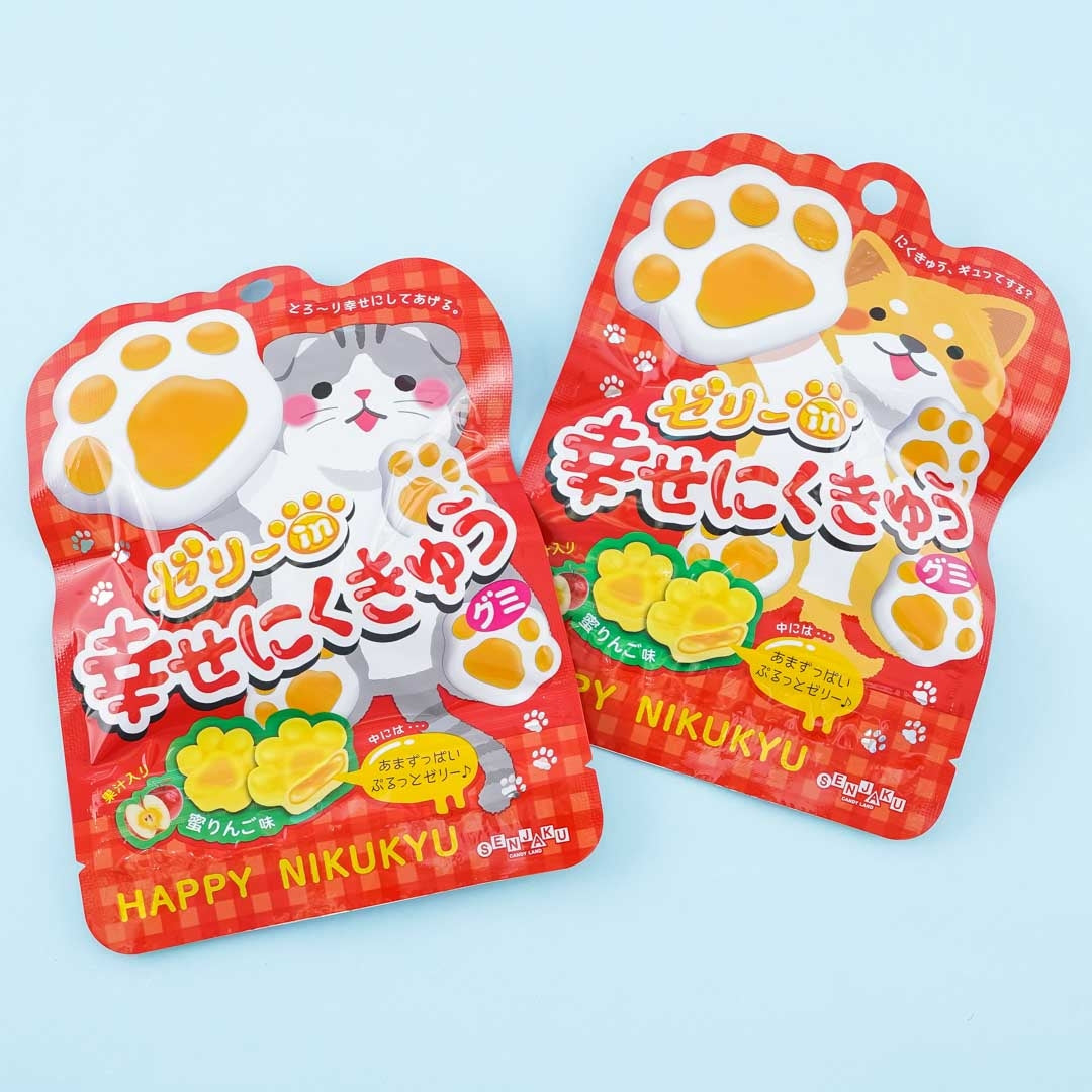 A pack of cat paw-shaped soft candies with honey apple flavor