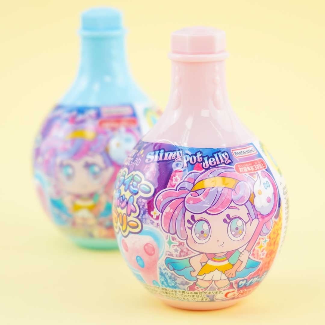Have a blast trying out this unique soda-flavored jelly candy that looks like slime! This treat comes in a round bottle-shaped container. It also includes a slime candy base, colored powder, candy toppings, and a tiny spoon. By ordering, you’ll get a random candy packaging out of two possible designs!