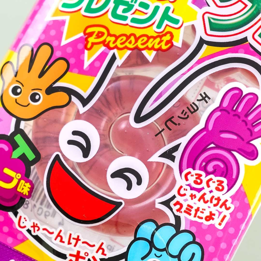 Enjoy trying out this funny-looking gummy named “Paruru” that’s shaped like a hand that’s doing the “rock” action on the childhood game “rock-paper-scissors!” This super-soft candy has a delicious grape taste.