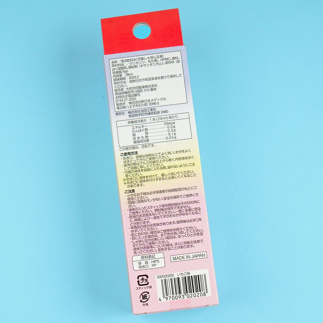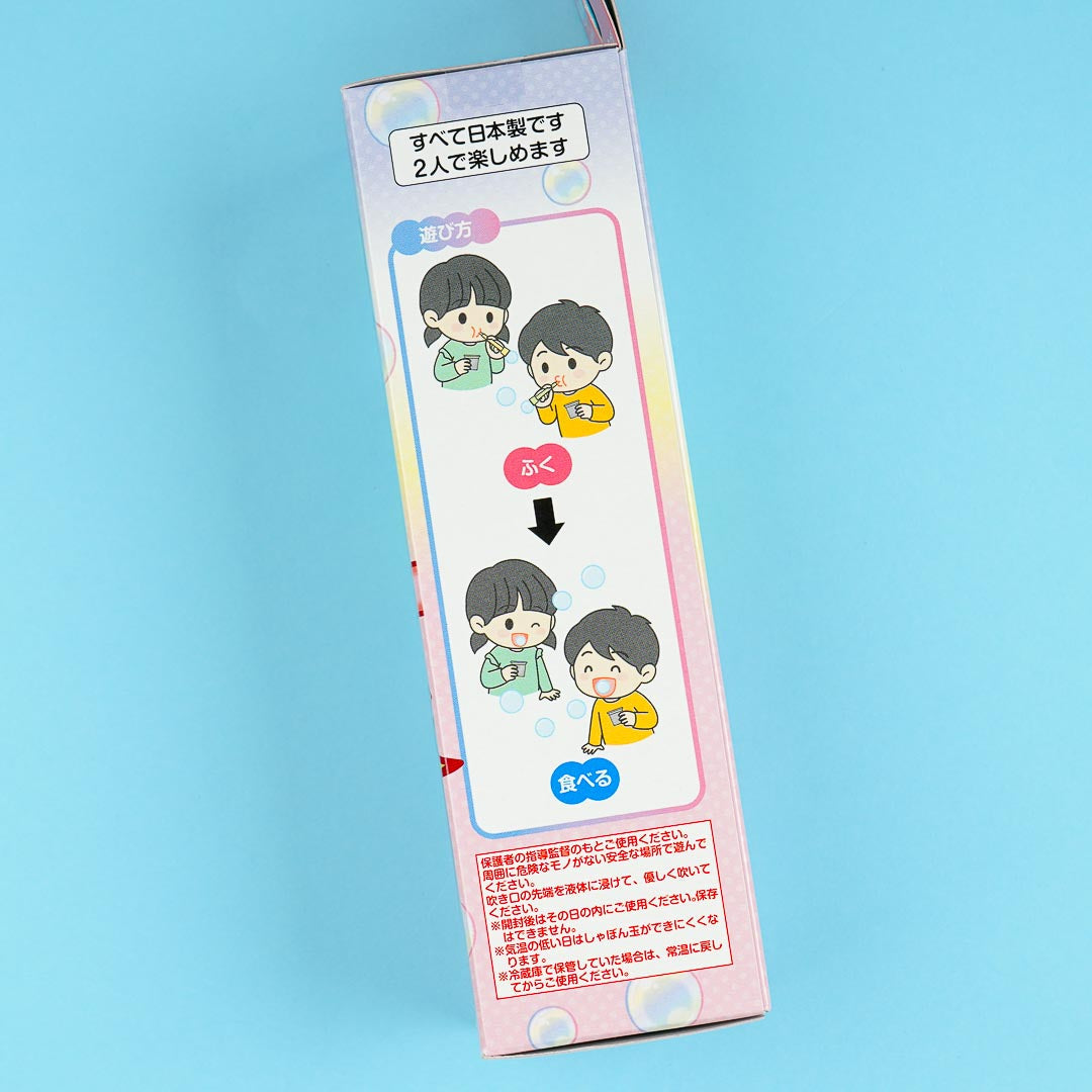 This unique treat is like a soap bubble that you can eat! It's made from safe and edible materials and has a yummy strawberry flavor. The pack comes with two canisters and two bubble pipes so you can enjoy this treat with your friend.