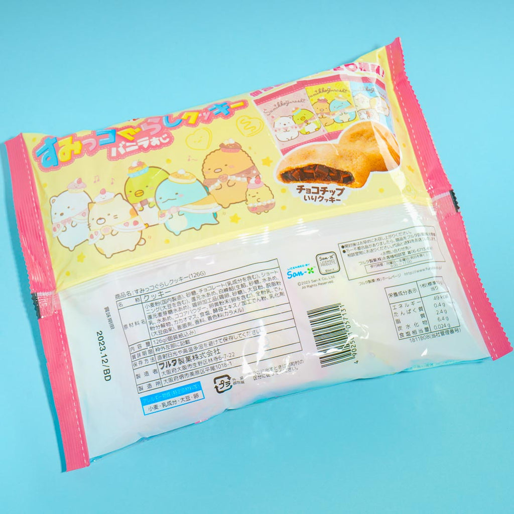 Munch on these kawaii cake shop-themed treats! The delicious cookies have a mild vanilla flavor and chocolate chip filling. Aside from the outer Sumikko Gurashi packaging, the individual wrappers also feature each cute character.