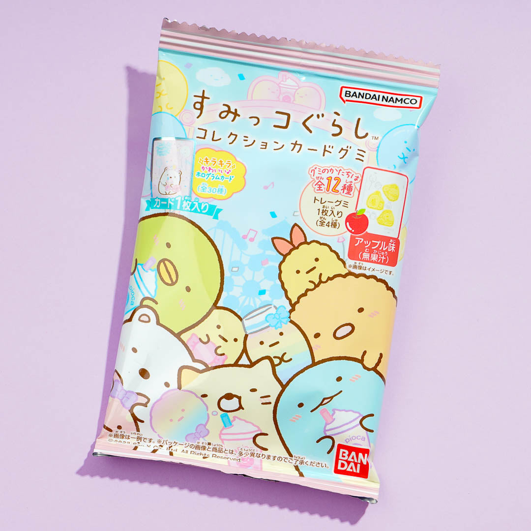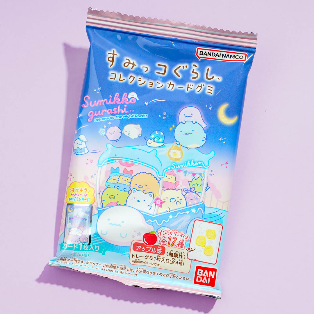 This pack of gummies showcases prints of the Sumikko Gurashi eating goodies at the gingerbread house! Share these yummy apple-flavored gummies with your kawaii buddies. It comes with a fun Sumikko Gurashi card. Surprise yourself with a card randomly selected from a set of 30 different designs when you order.