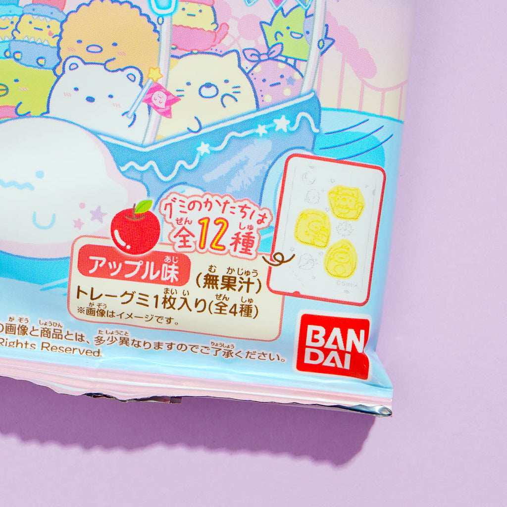 A pack of apple-flavored gummies showcasing the Sumikko Guarashi eating at a gingerbread house