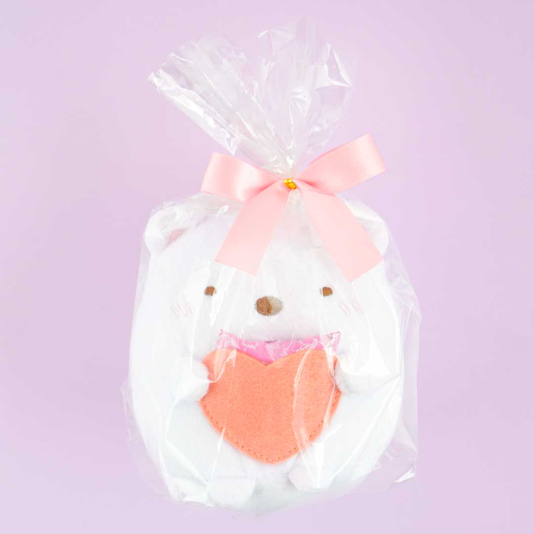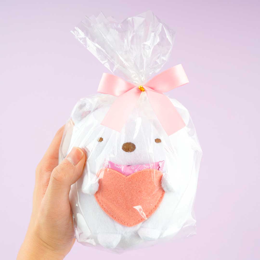 Give this super cute Shirokuma plushie that is hugging a heart to your special someone! It also comes with a free sweet choco treat.
