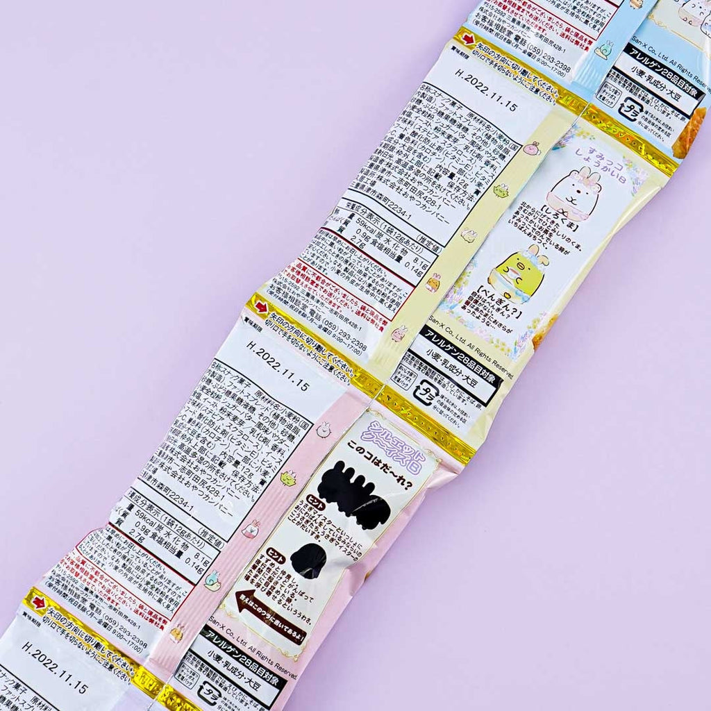 • A bundle of wheat rusks biscuit packs with sugar butter flavor featuring Sumikko Gurashi