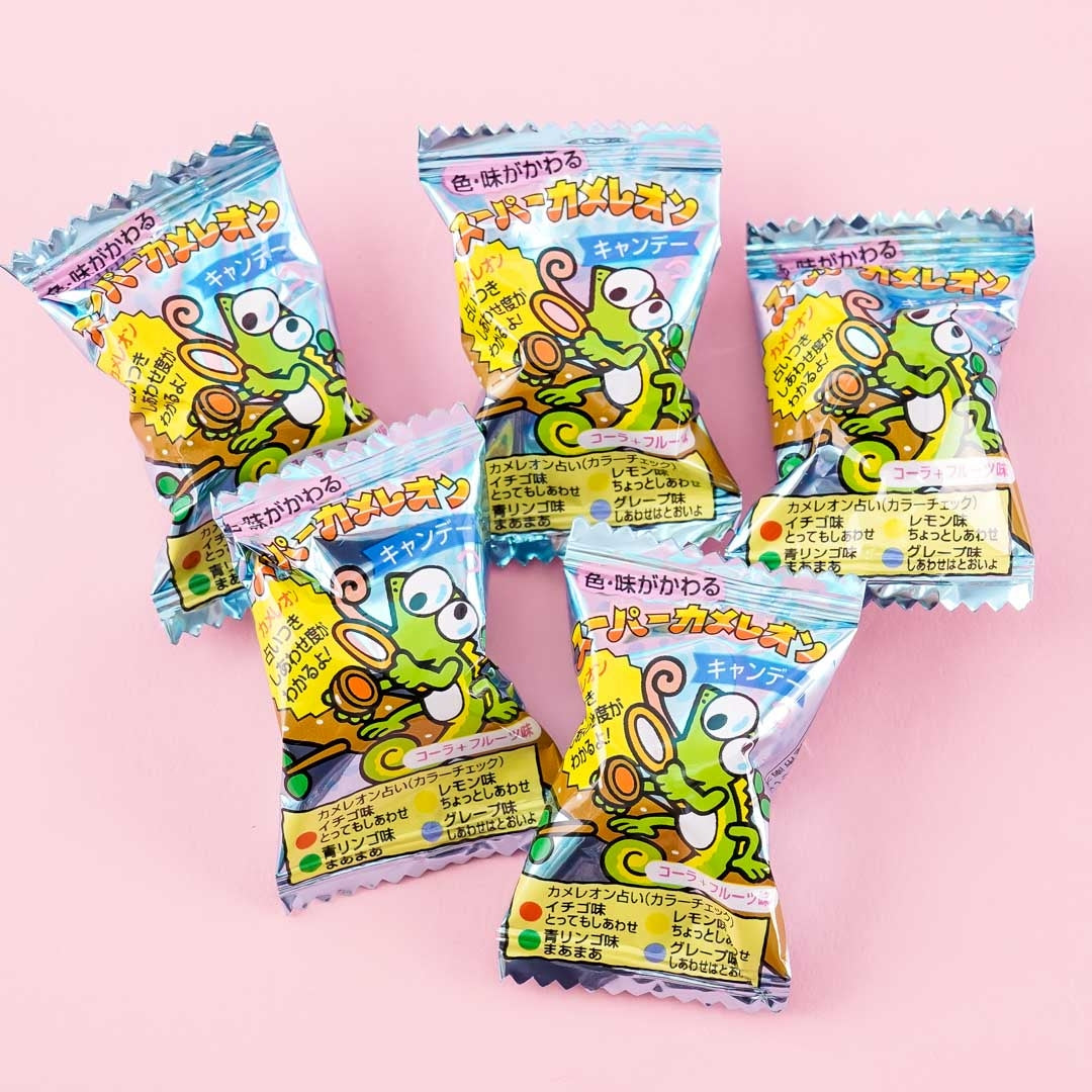 Eat two candy balls in one go and experience both color changes and different fruity flavor combinations! These dagashi or inexpensive Japanese sweets will also tell your fortune for the day based on what you’ve just tasted! These colorful treats come individually wrapped.