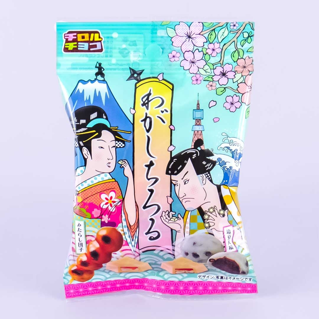 Tirol chocolate has been a Japanese best-seller ever since it was introduced in 1962. This bag of chocolates offers two different flavors of Japanese wagashi or traditional confections. The first flavor is mitarashi dango or sweet soy sauce-glazed rice dumplings and the second is Siomame Daifuku which is a kind of mochi.