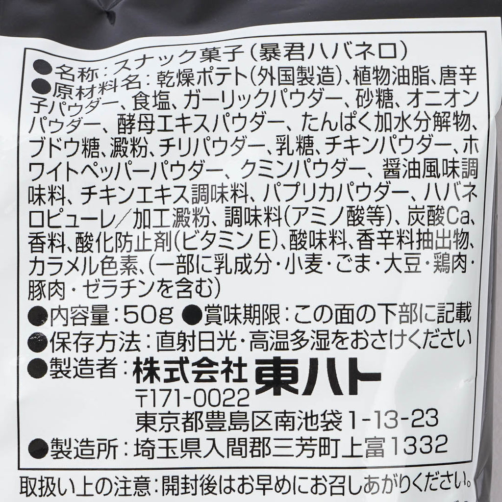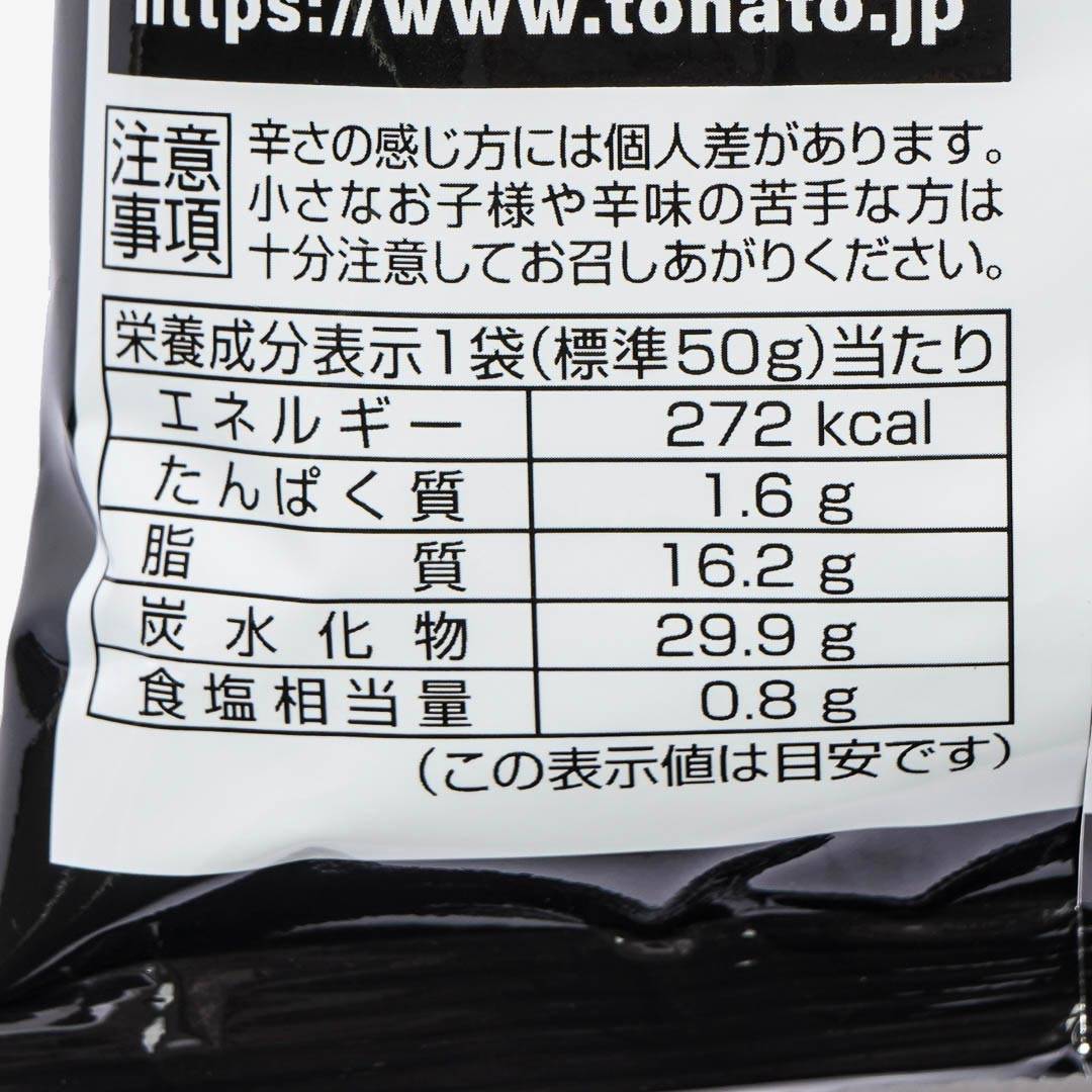 These potato ring chips are not for the faint-hearted! The Tohato Habanero chili potato rings are super spicy snacks for those living on the edge. The black package is decorated with a giant red habanero chili pepper with a mischievous smile! Challenge your friends to try out these crazy snacks, but beware, you have been warned! Hoooot!