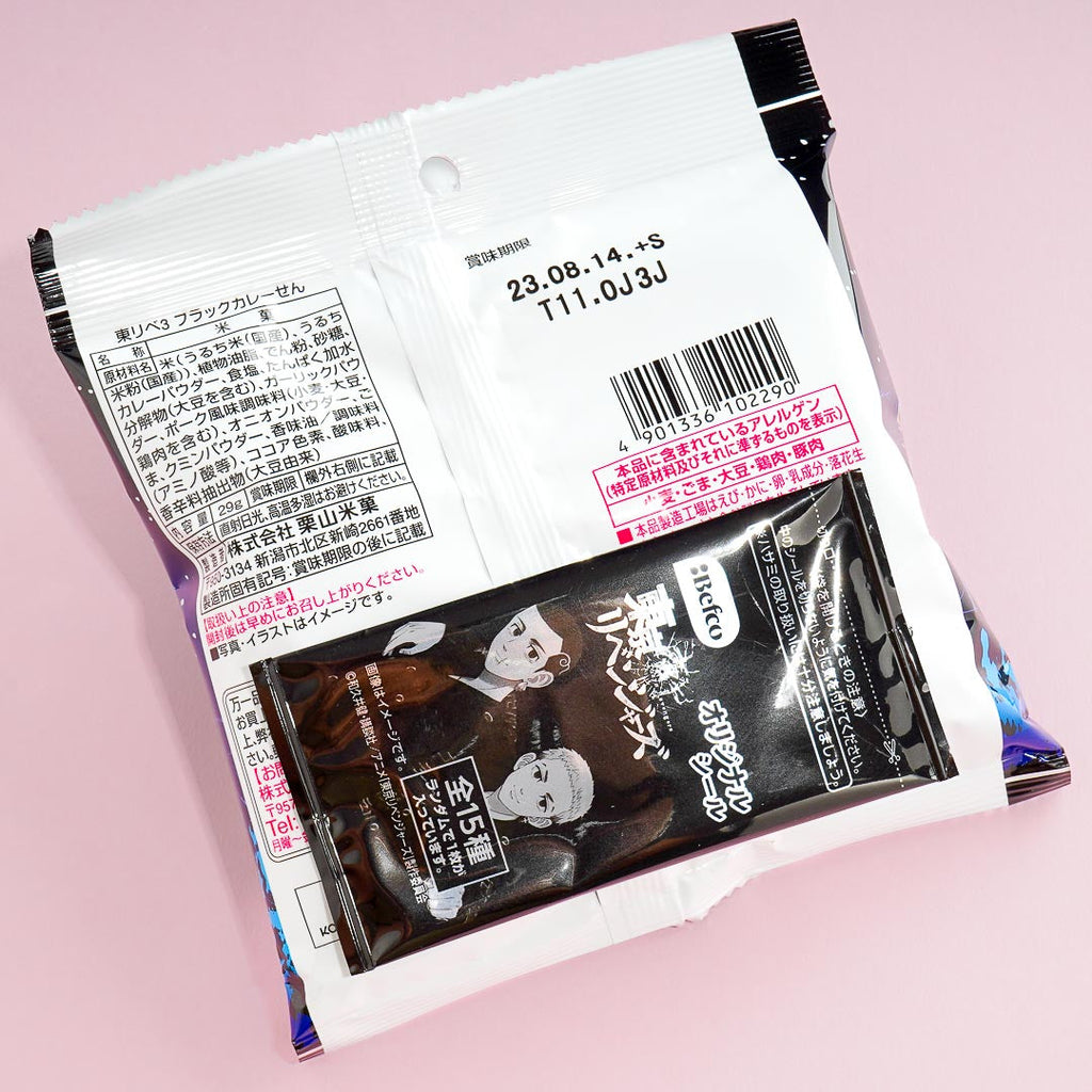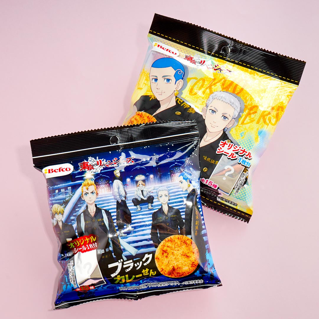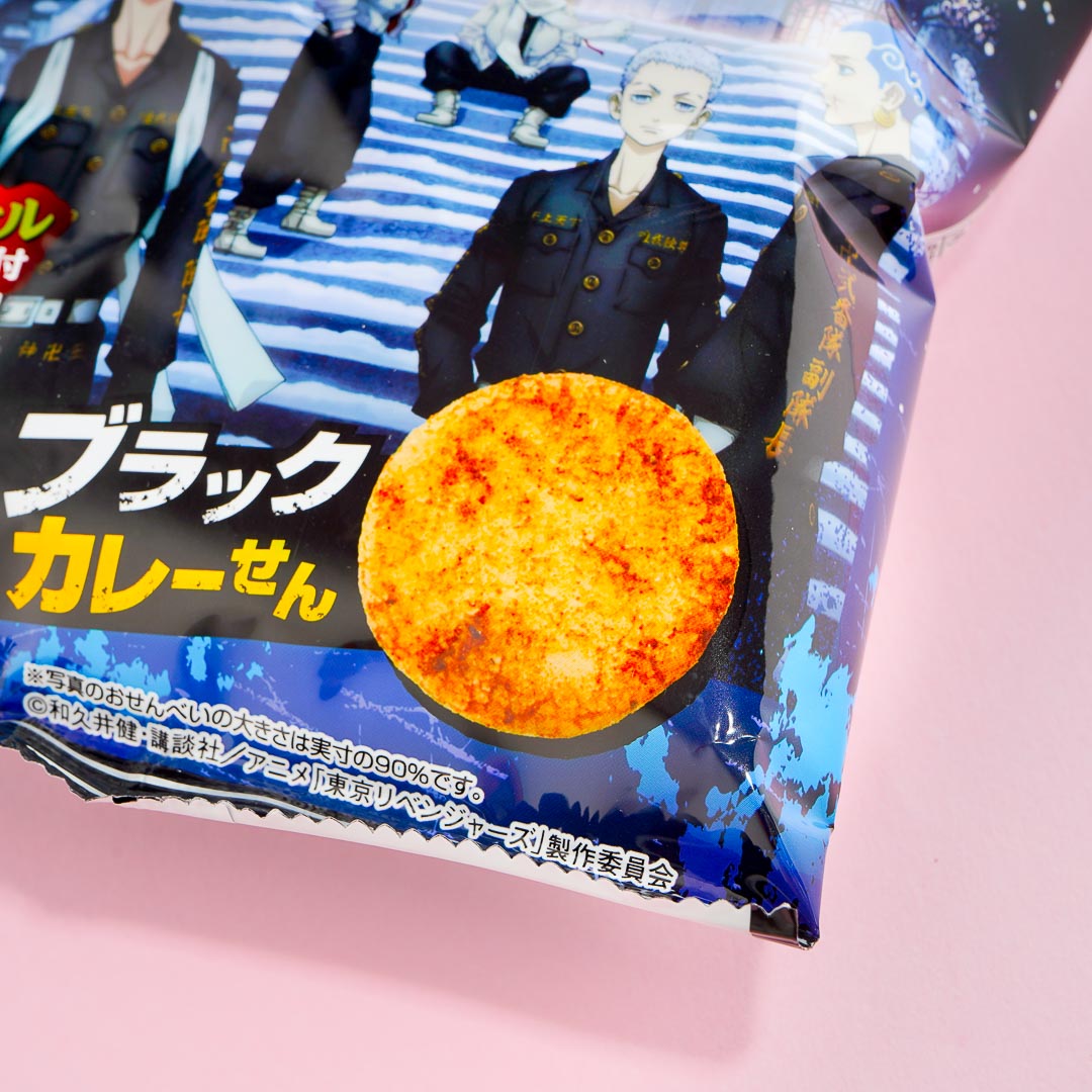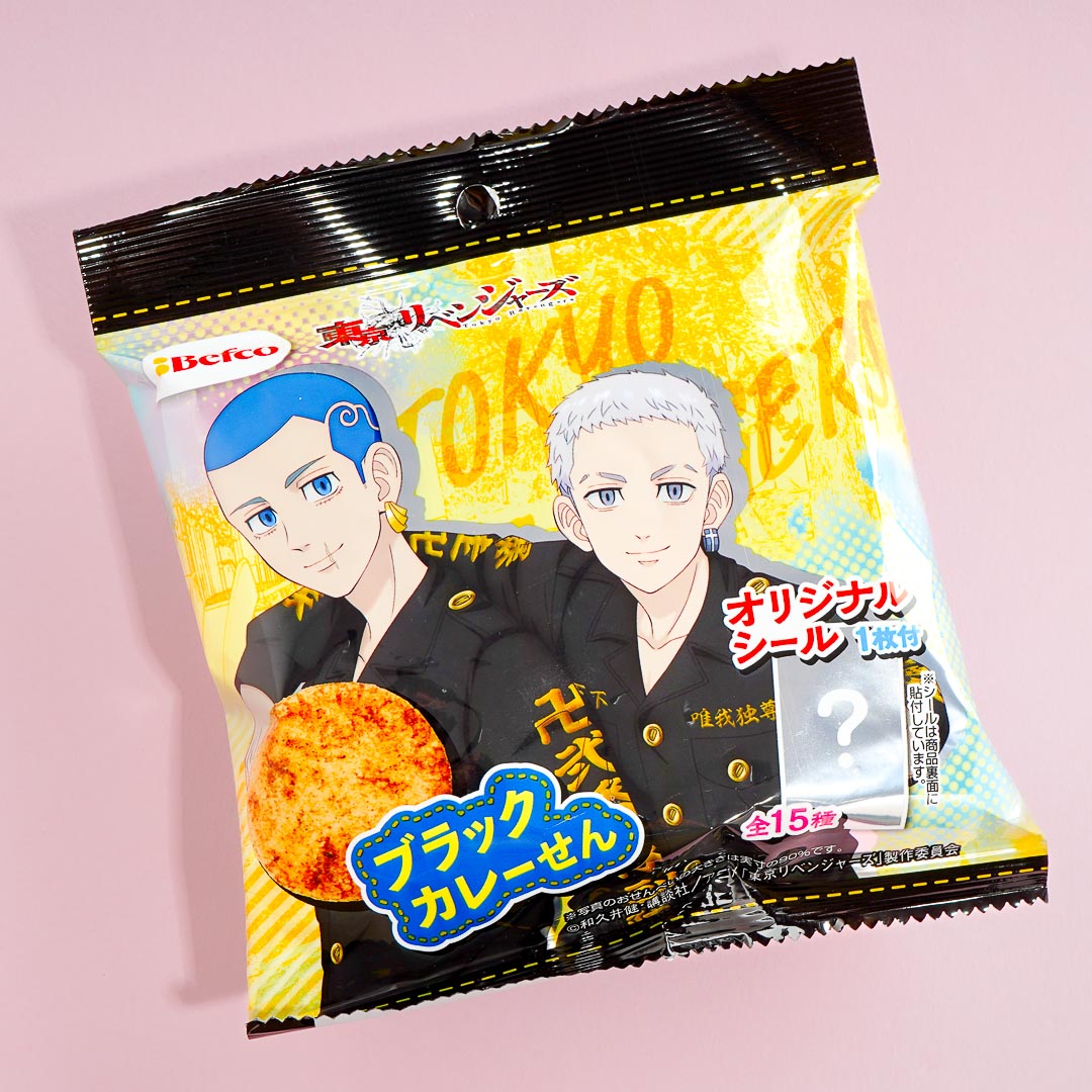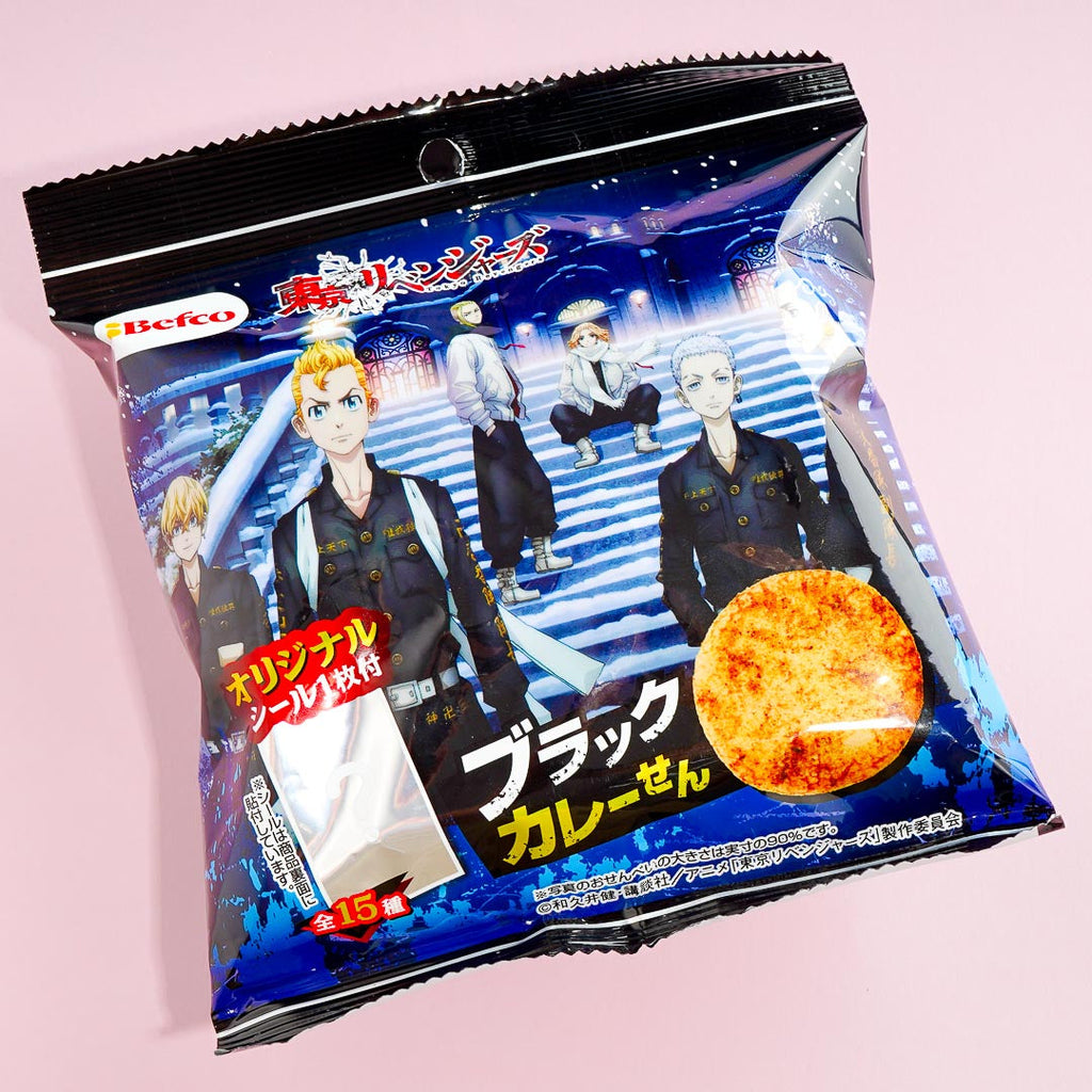 Have an anime marathon with this black curry-flavored pack of senbei or rice crackers! The packaging features characters from Tokyo Revengers and it comes with a surprise design when you order.