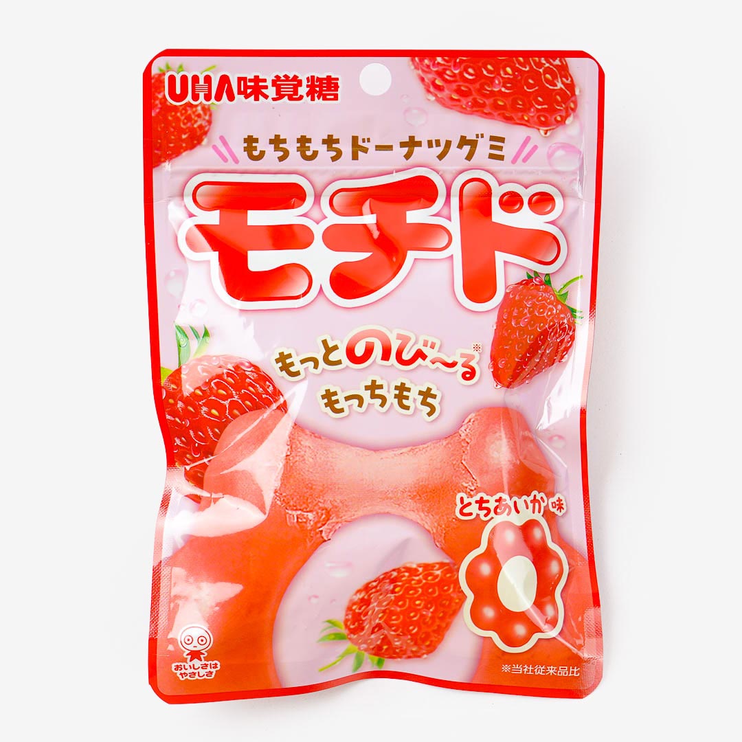 Satisfy your curious taste buds with this squishy treat! It looks like the famous mochi Pon de Ring donut that’s popular in Japan with a delicious strawberry flavor. You’ll enjoy the crispy outer coating and the inner chewy mochi texture.