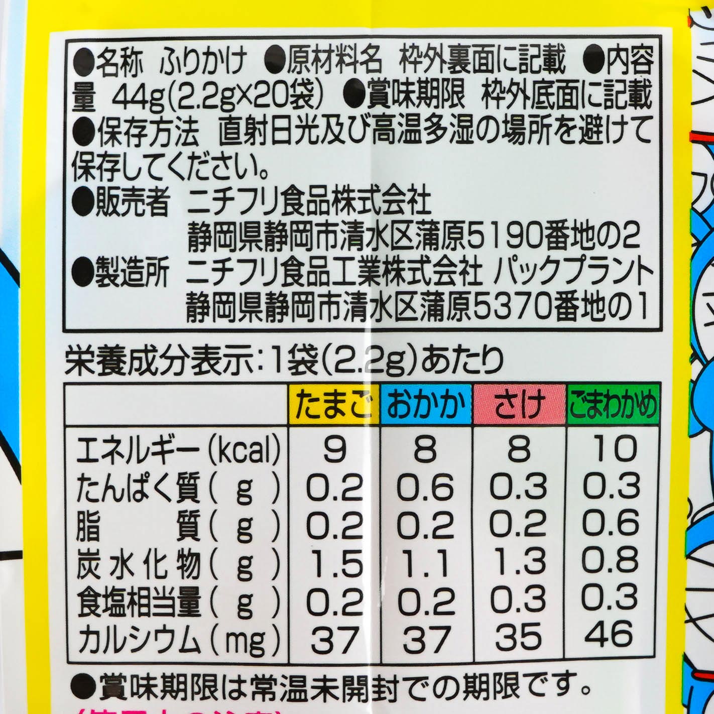 A bag of Japanese all-purpose seasoning pouches with various flavors featuring Doraemon