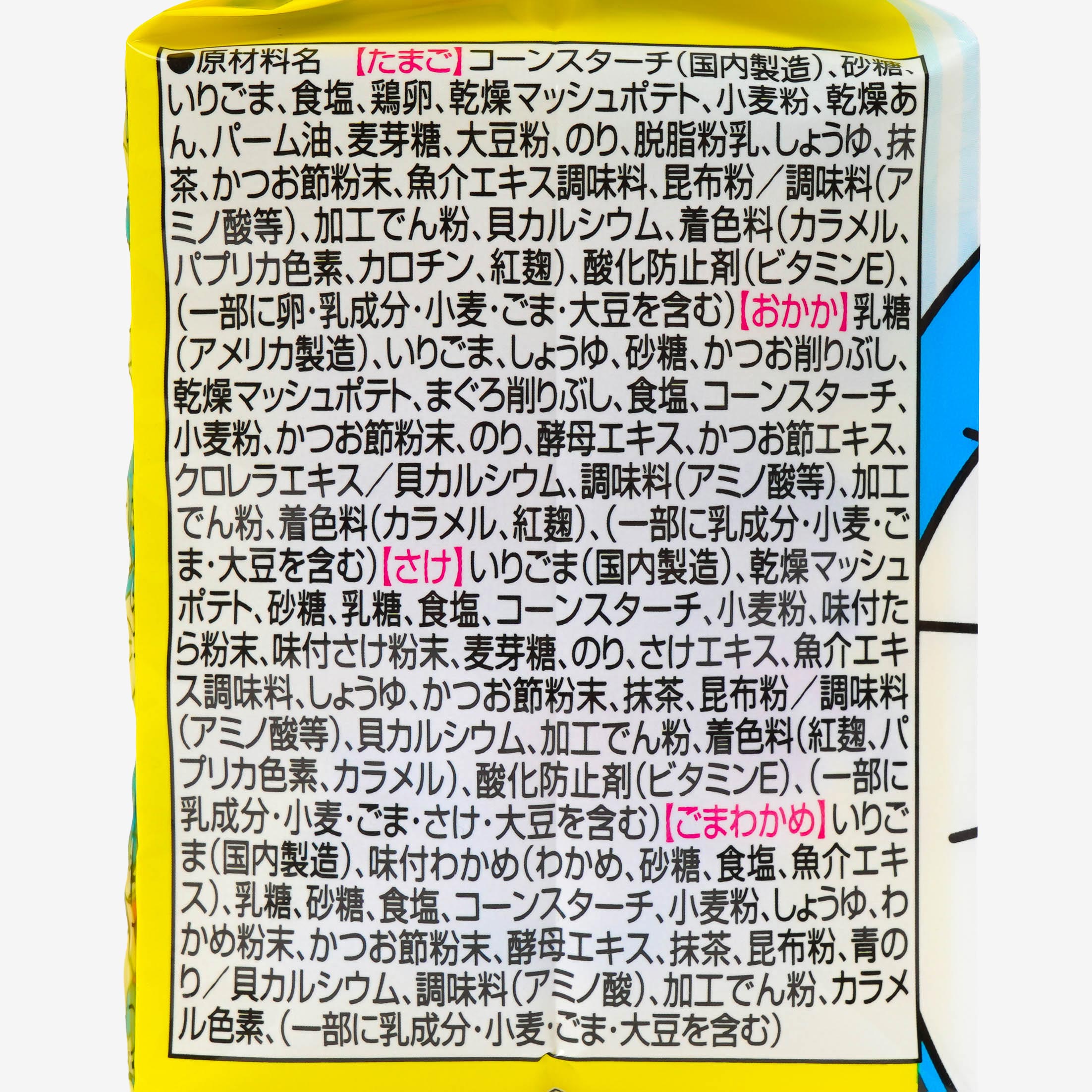 Includes 20 x packs of bonito, egg, sesame seaweed, and salmon-flavored furikake