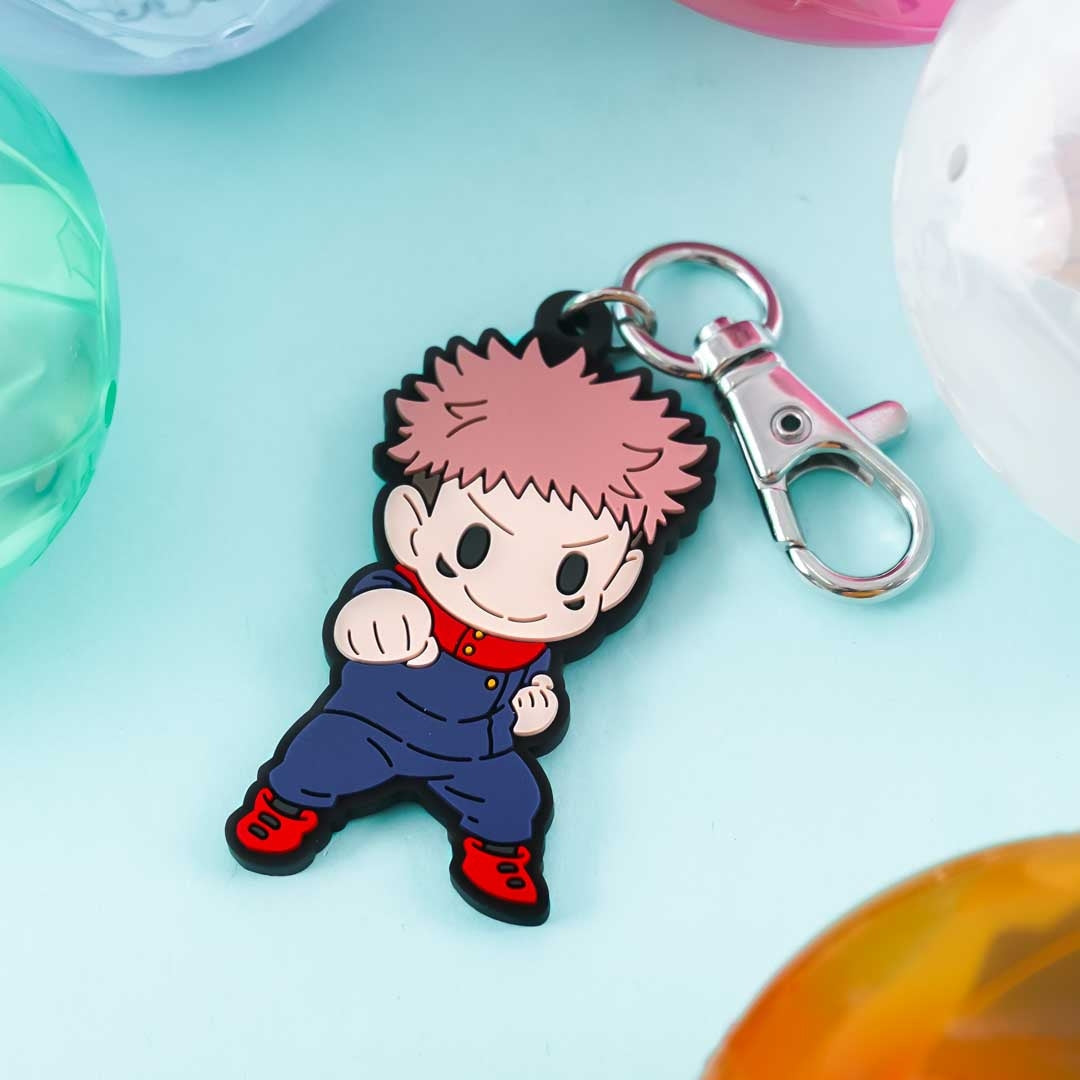 Gachapon vending machines are widely popular and can be seen everywhere in Japan. They dispense kawaii Japanese collectible items placed inside a Gachapon capsule. The fun part is you don’t know exactly what you’re going to get! Experience the thrill of a Japanese toy vending machine with this limited-edition Jujutsu Kaisen flat rubber character keychain! You’ll receive a random one out of four designs, just like in real Gachapon games!