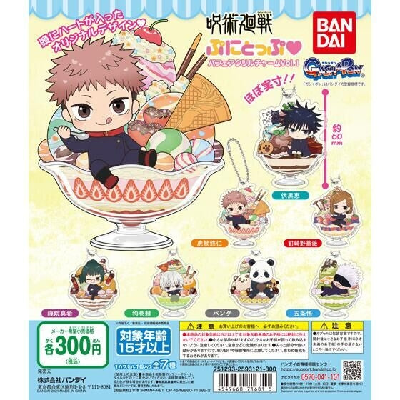 A gachapon capsule with a die-cut charm collectible from the Jujutsu Kaisen Parfait Charm series