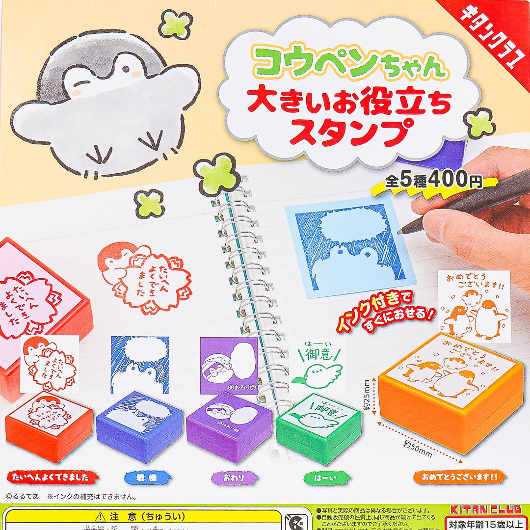 Decorate your journal or scrapbook by using this super cute big stamp! It features a random message and character from the “Koupen Chan Big Useful Stamp” series. This colorful gachapon capsule comes with one stamp, so it’ll always be a random cute surprise what design you will get!