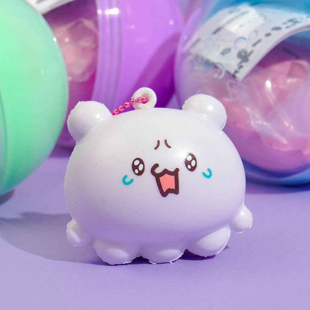 Add a fun and kawaii touch to your bag with this super cute charm! It features Sumoppi and Pyonchi, the cute characters from Loveez, with different facial expressions. This squishy charm comes in a gachapon capsule so you'll get a surprise design!