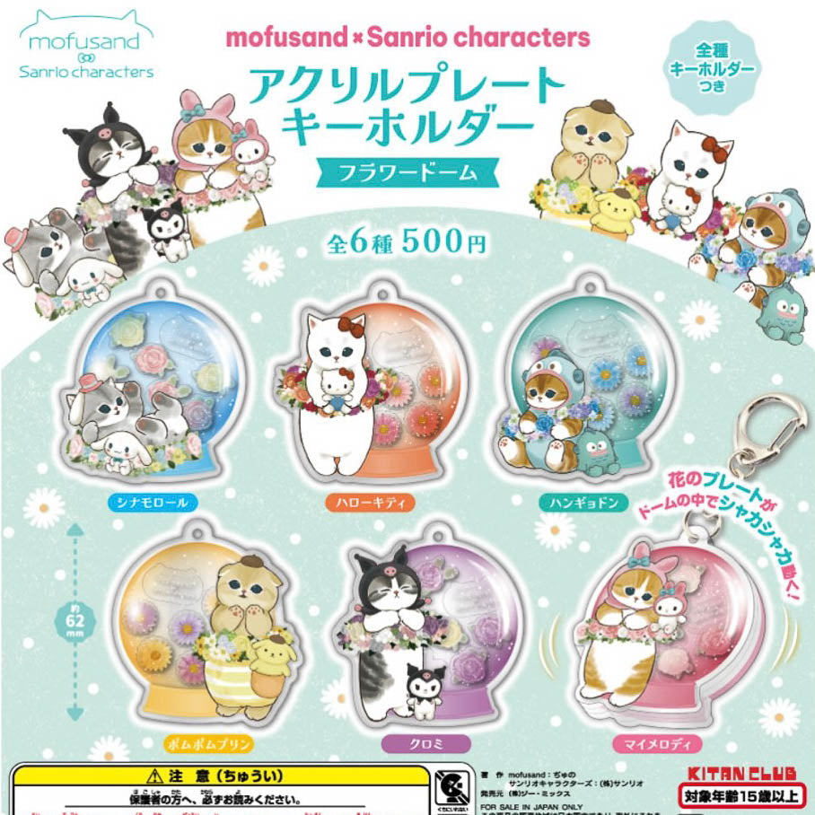 Kawaii-fy your keys with this super cute acrylic keychain featuring Mofusand cats dressed as Sanrio Characters! This keychain has a floral acrylic plate inside that moves when you press it.
