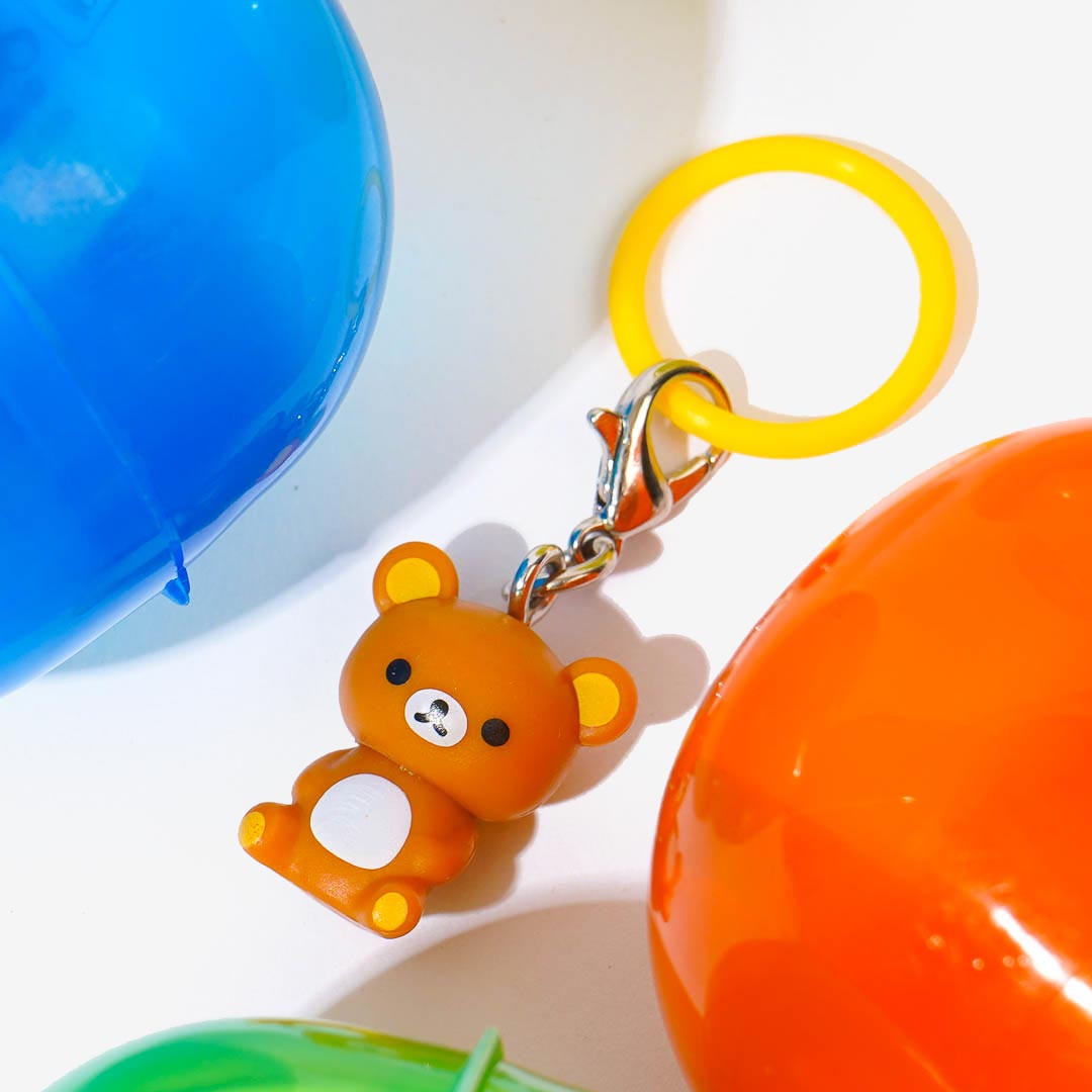 Add a touch of kawaii to your plain, everyday items with this super cute charm that comes in a gachapon capsule! It looks like a mini figure featuring Rilakkuma and friends. This charm comes with a flexible silicone ring and a tiny lobster clasp, making it easy to attach to umbrellas, backpacks, and even plastic bottles!