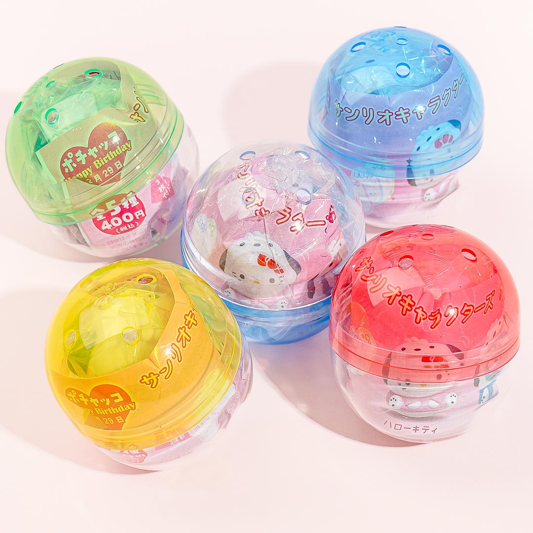 Hide secret messages inside this kawaii wobbling figure! It features a random Sanrio Characters cutie dressed as Pochacco. Simply twist the toy to reveal the secret compartment inside. The gachapon capsule comes with a random character so it will always be a fun surprise when you open it!